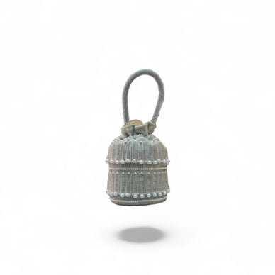 Aggiungi un tocco regale al tuo abbigliamento festivo con questa elegante borsa potli in velluto argentato, splendidamente decorata con intricati ricami di perle e perline. La lussuosa base in velluto ne esalta l'aspetto opulento, mentre i delicati dettagli aggiungono un tocco di raffinatezza. Dotata di un morbido manico imbottito per un trasporto confortevole e di una chiusura a coulisse sicura, questa potli fonde perfettamente tradizione ed eleganza contemporanea. Ideale per matrimoni, feste o celebrazioni festive, è l'accessorio perfetto per completare il tuo look elegante.