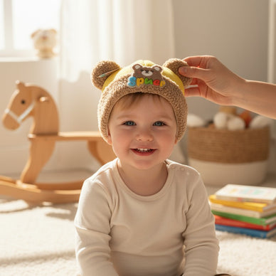 Keep your little one warm and irresistibly cute with this Brown Teddy Ears Winter Knit Cap. Designed with soft, cozy knit fabric, it features adorable bear ear details and a cheerful teddy patch with colorful “Spuer” lettering for a playful touch. The snug fit ensures comfort and warmth during cold days, making it perfect for indoor playtime or outdoor strolls. Stylish yet practical, this cap blends charm with functionality—an essential winter accessory for every baby’s wardrobe.